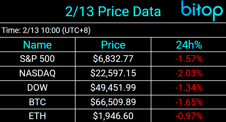 The potential disruptive impact of artificial intelligence continues to spread, weakening U.S. tech stocks and Bitcoin prices, while silver plummeted as investors flocked to the safe haven of the U.S. Treasury market. Bitcoin (BTC) continued its decline, dipping to a low of $65,118 earlier this morning. Standard Chartered analysts have revised their year-end 2026 target price downward from the original $150,000 to $100,000. They also anticipate that Bitcoin prices could fall to $50,000 (or slightly below), while Ethereum could drop to $1,400.